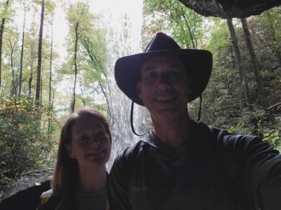 Amber and I went camping with Trey and Donna at Unicoi State Park in northeast GA close to the town of Helen. We loved the area! There was a threat of severe thunderstorms for out trip there but the only significant rain we saw was when we stopped for lunch about half way there, what luck. When we got back on the road, the sun came back out and it was smooth sailing the rest of the way. That evening after we got settled into camp, we took a walk on the lake trail before dinner, it was really nice! The next day after breakfast, we went to Anna Ruby Falls. It is a beautiful twin falls in Chattahoochee National Forest. It was a short hike but totally worth going to see. After that we went into the town of Helen to explore and its German style architecture was super cool. The shops were nice and we had the best lunch at Hofbrauhaus Restaurant & Pub (German pretzel, beer cheese and Schnitzel) oh and I had a Erdinger Hefeweizen... it's 5'Oclock somewhere ;-). That night we ate filet at camp and stayed up late watching WVU beat Moorehead in the first round of March Madness… GO 'NEERS!! Our last full day, Amber and I did a six-mile hike to Raven Cliff Falls which was absolutely stunning!!! The entire hike was along a creek with multiple waterfalls and then a grand finale with a big waterfall that fell between two huge granite rocks about 50 feet tall. That afternoon, we went to Habersham Winery and Amber and Donna did a wine tasting while Trey and I hung out and looked through the shop. Dinner for Amber and I that night was at a local pizza place at The Nacoochee Village Tavern & Pizzeria. Another great trip! Until next time…